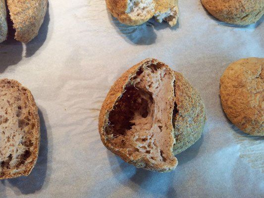 Je nach persönlicher Vorliebe kann man diesen Umstand aber auch gezielt für sich nutzen. Für Brötchen empfehlen wir sogar, ein bisschen mehr Wasser zu nehmen, da Brötchen anteilig mehr Kruste besitzen, die eine weichere Krume besser stabilisieren kann. Sie werden durch mehr Wasser fluffiger. Wenn dir kompakteres Brot oder Brötchen besser gefallen, kannst du dies durch weniger Wasser erreichen.