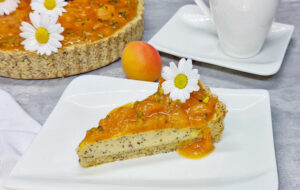 Rezept Mohn Vanille Grießpudding Tarte mit Marillentopping low carb keto glutenfrei