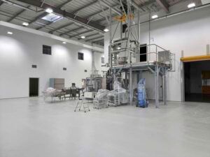 Die ersten Rohstoffsäcke wurden angeliefert, der Produktionsraum war fertig aufgebaut und der Lebensmittelmischer instandgesetzt.