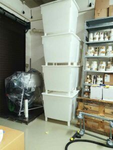 Jede Ecke stand voll und jeden Tag musste “Paletten-Tetris” gespielt werden. Die Anlieferung von Rohstoffen und die Abholung frisch produzierter Waren an unseren Logistikpartner wurden auch immer häufiger und gestaltete sich in den engen Nebenstraßen der Bobenheimer Altstadt als “spannend” – nicht nur wegen der Bordsteinkante.