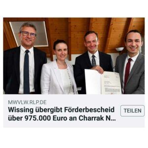 Nach erfolgreicher Präsentation unseres Vorhabens bei der Gemeinde Sembach konnten wir die örtliche Sparkasse Kaiserslautern für unser Projekt als Finanzierungspartner gewinnen und bekamen den Förderbescheid von Dr. Volker Wissing, dem (damals noch) Wirtschaftsminister von Rheinland-Pfalz, persönlich überreicht. Hier könnt ihr unseren damaligen Beitrag dazu lesen: