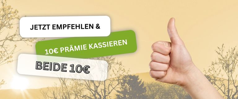 Empfehle uns deinen Freunden und erhalte von uns als Dankeschön 10€ Shop-Guthaben pro erfolgreicher Empfehlung. Deine Freunde erhalten als Neukunde einen Rabatt von 10€ auf ihre erste Bestellung.