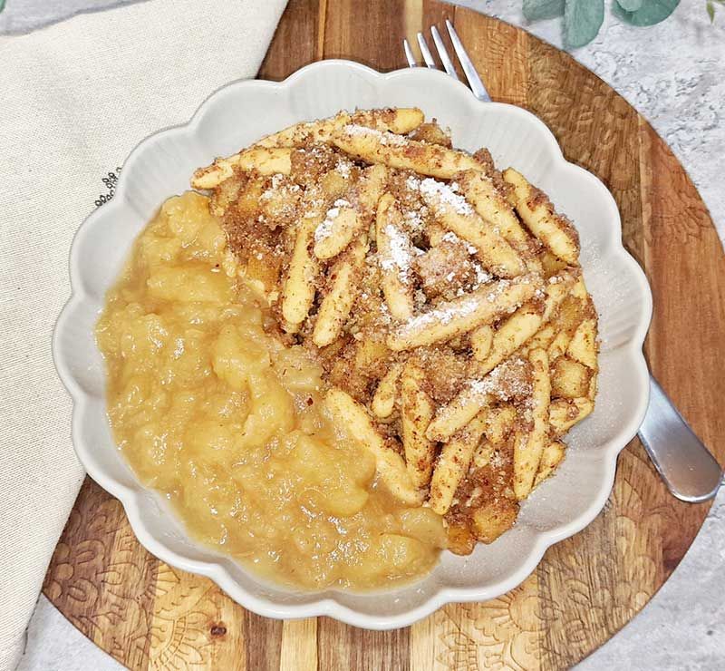 Das Grundrezept lässt sich gut vorbereiten und portionsweise einfrieren. Sowohl die Mohnnudeln und Apfel Haselnussnudeln sind lecker.