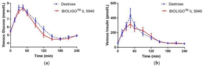 Getestet wurden 2 unterschiedliche IMOs und Dextrose (Traubenzucker) als Kontrollgruppe. Eingenommen auf nüchternen Magen, zeigten beide IMOs keinen signifikanten Unterschied bei der Beeinflussung des Blutzuckers verglichen mit Traubenzucker. Der Einfluss auf den Insulinspiegel war etwas niedriger, aber immer noch sehr stark.