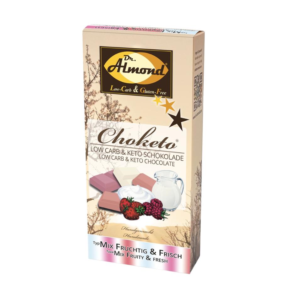 CHOKETO Low Carb & Keto Schokolade MIX-Paket FRUCHTIG & FRISCH – Joghurt-Quark + Erdbeer-Sahne + Himbeer-Joghurt – 3 Tafeln – handgemacht