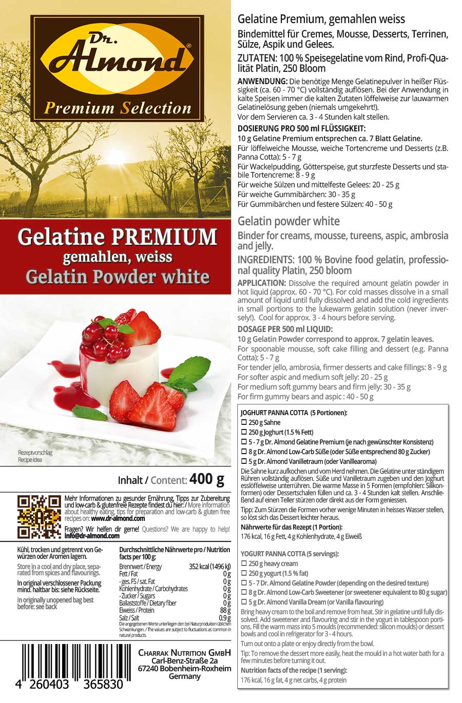 Hersteller: Charrak Nutrition GmbH, Robert-Bosch-Straße 14, 66877 Ramstein-Miesenbach | Kontakt: info@dr-almond.com | https://charraknutrition.com
