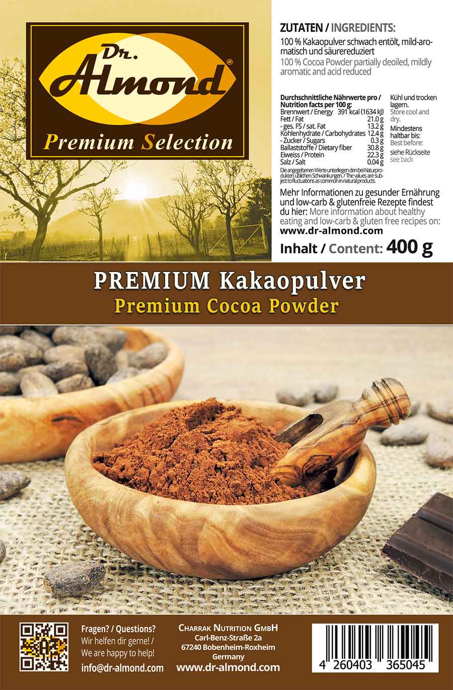 Hersteller: Charrak Nutrition GmbH, Robert-Bosch-Straße 14, 66877 Ramstein-Miesenbach | Kontakt: info@dr-almond.com | https://charraknutrition.com