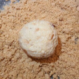 - Knödel abgetropft darin wälzen und mit Vanilletraum bestreuen.