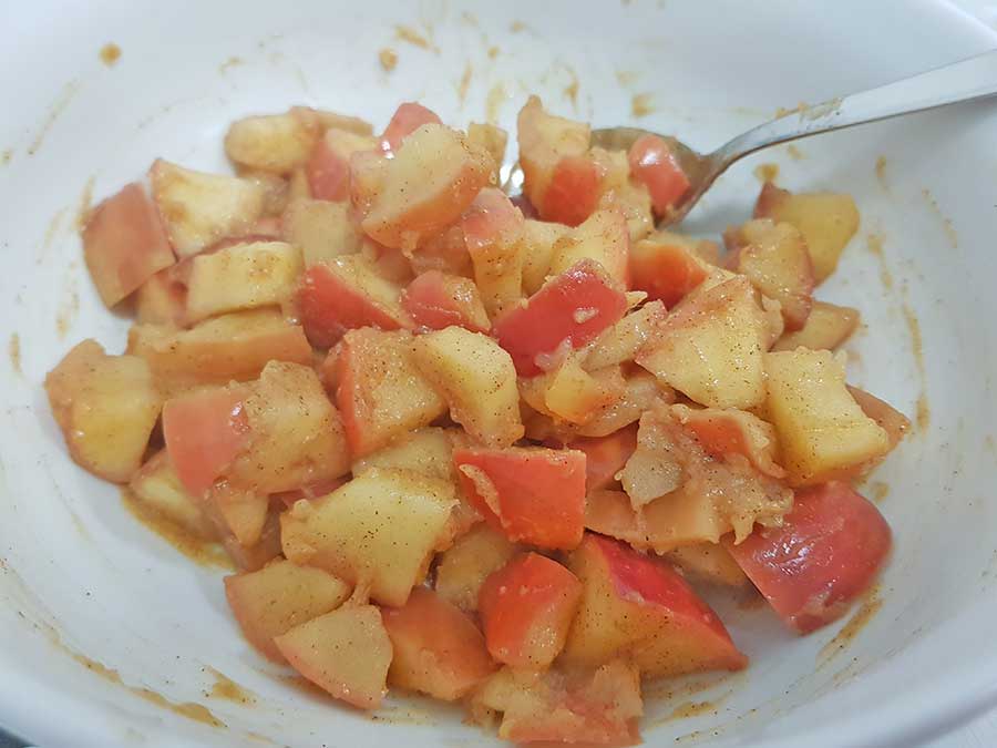 Die köstliche Füllung aus frischen Äpfeln und Zimt wird mit unserem low carb Vanillepuddingpulver angebunden und bleibt so saftig ohne stark durchzuweichen.