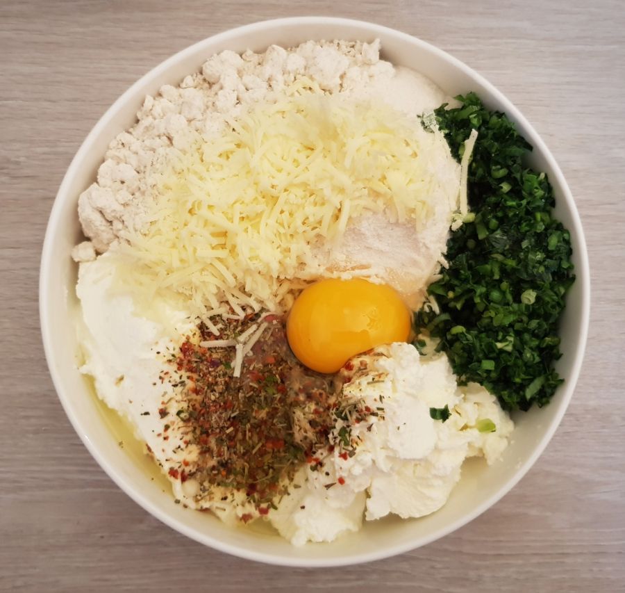 - Bärlauch in etwas Ghee kurz anbraten und zu Seite stellen. Eine Schüssel vorbereiten und alle Zutaten incl. Bärlauch hinzufügen und einen gleichmäßigen Teig kneten. Funktioniert am Besten mit den Händen.