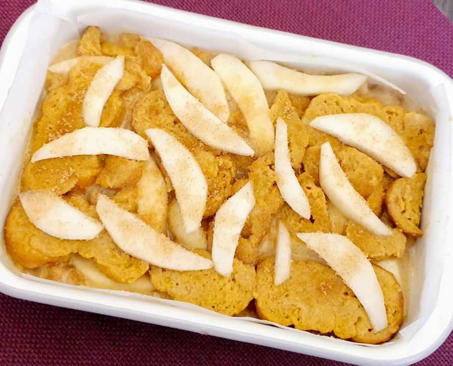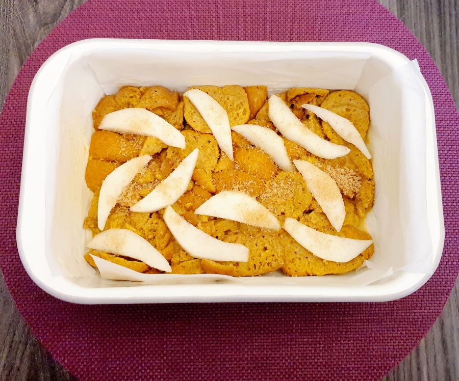 Rezept Birnen Scheiterhaufen mit Rahmguss und Vanillesauce lowcarb glutenfrei