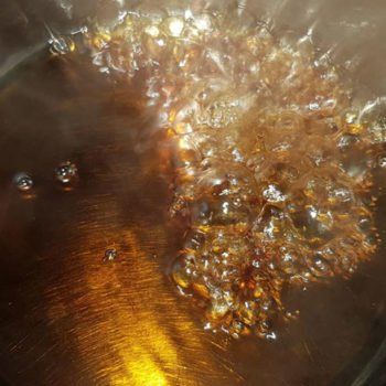 - Dann das Wasser hinzugeben (vorsicht: Verbrennungsgefahr durch starkes blubbern) und kurz unter Rühren aufkochen.