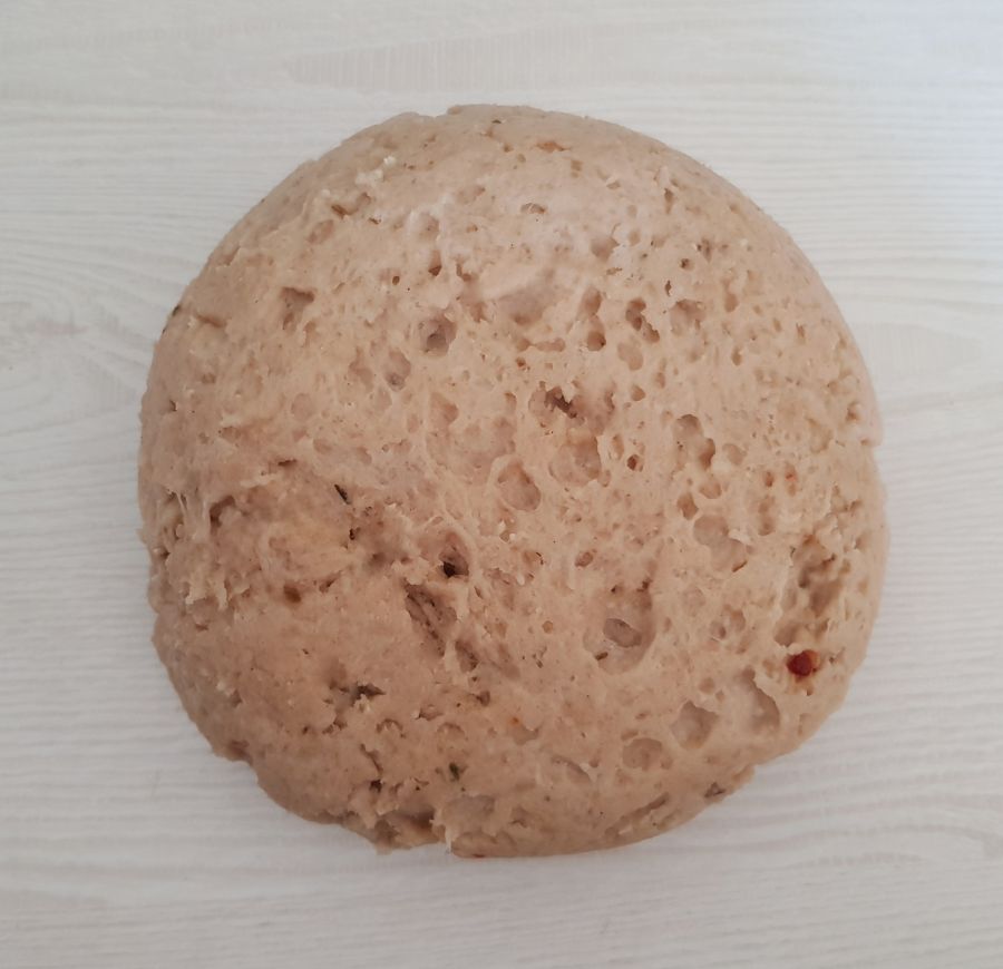 - Aus der Toastbrotmischung, Gewürzen, Salz und Wasser einen Teig zubereiten. Der Teig sollte unbedingt gewürzt werden, bitte nicht weglassen.