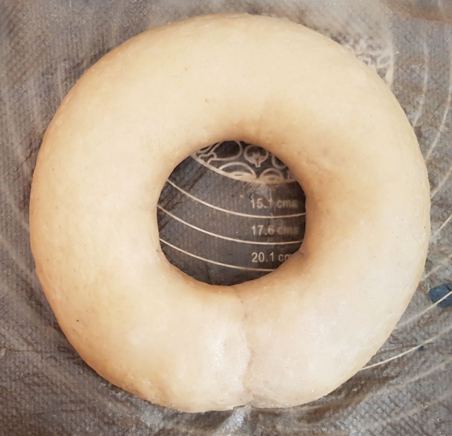 - Mit feuchten Fingern und dem beiseite gelegtem Teig den Kranz verschließen. Mit feuchten Fingern funktioniert das super. So kann man den Teig auch schön glätten.