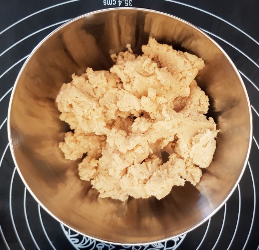 - Aus Mandelteig, weicher Butter, Eiern, Süße, Pure Flavour und Wasser einen Teig zubereiten. Zur Seite stellen.