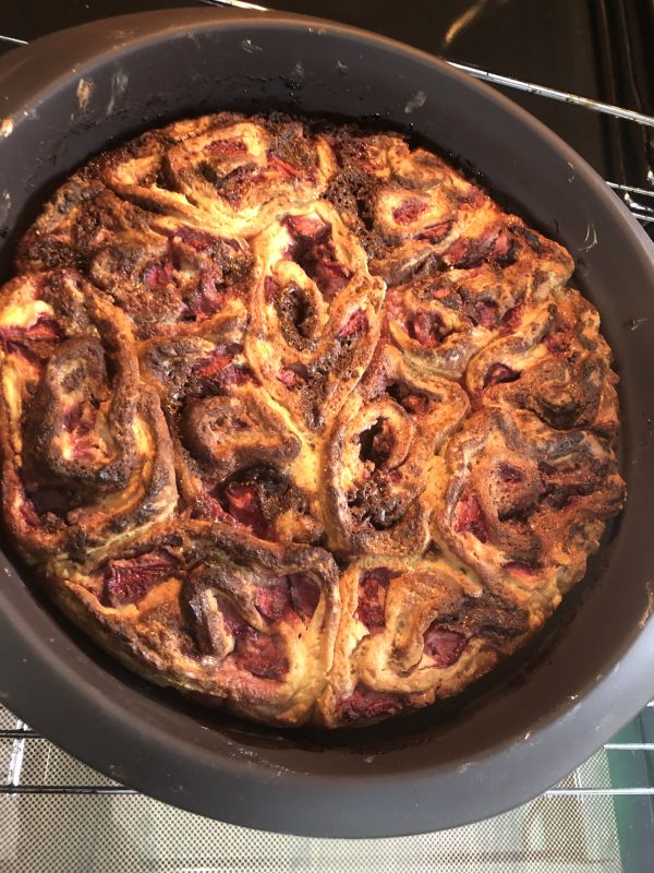 Leckerer Kuchen aus Briocheteig mit Erdbeeren, Ricotta und etwas NUKETO - NUR 158kcal und 3g KH pro Stück!