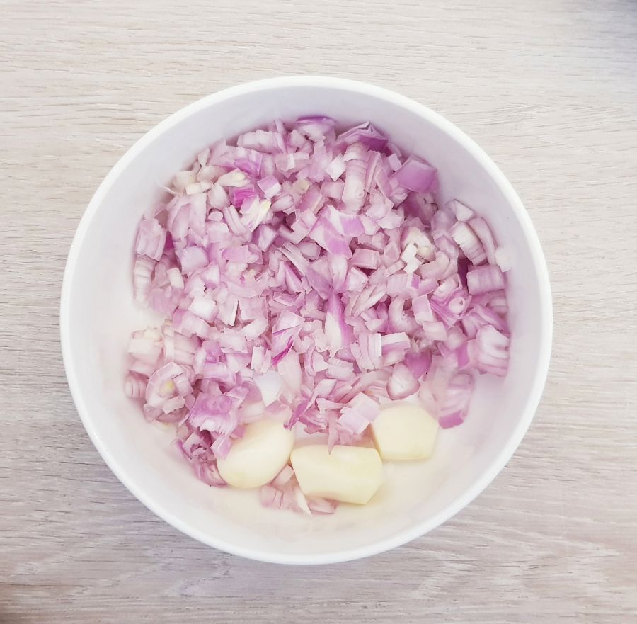 • Spinat putzen, waschen und gut abtropfen lassen. Spinat zerkleinern. Petersilie auch zerkleinern. Zwiebel in kleine Würferl schneiden und den Knoblauch pressen. In einer Pfanne Ghee erhitzen, Zwiebel anbraten und dann Spinat, Knoblauch, Petersilie hinzufügen, etwas anbraten und mit Wasser aufgießen. Halben Teelöffel Salz hinzufügen und den Spinat köcheln lassen bis das Wasser verdampft ist. Gemüseliebling, Pfeffer, eventuell noch Salz - da bitte selbst entscheiden und den Creme Fraiche unterrühren. Abkühlen lassen. In der Zwischenzeit den Schafkäse mit einer Gabel zerkleinern und mit der abgekühlten Spinatmischung vermischen. Zur Seite stellen.