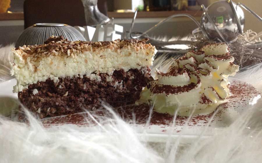 Für absolute Kokosliebhaber - Boden und Creme mit viel Kokos und viel Schokolade oben drauf - pro Stück NUR 6 KH