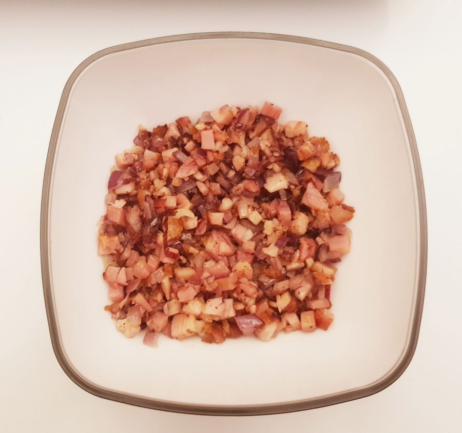 - Zwiebel und Speck in Ghee anbraten und zur Seite stellen.