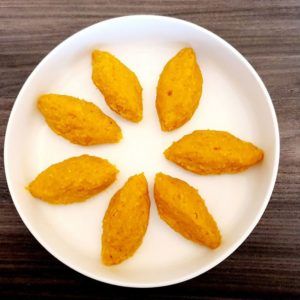 - Kürbis in Würfel schneiden und mit Wasser weich dünsten, mit Pürierstab pürieren, abkühlen lassen.