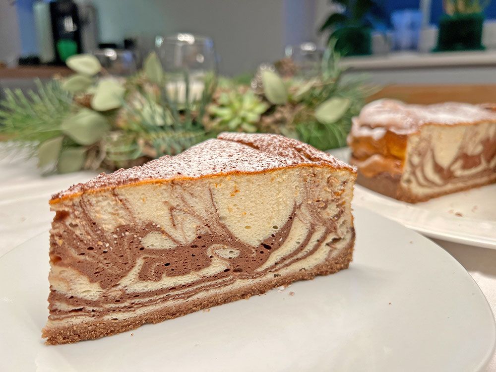 - Bei 160 Grad ca. 70 Minuten backen. Die Innentemperatur der Käsemasse sollte mindesten 85 Grad betragen. Sollte die Oberfläche zu dunkel werden, einfach mit Alufolie locker abdecken.