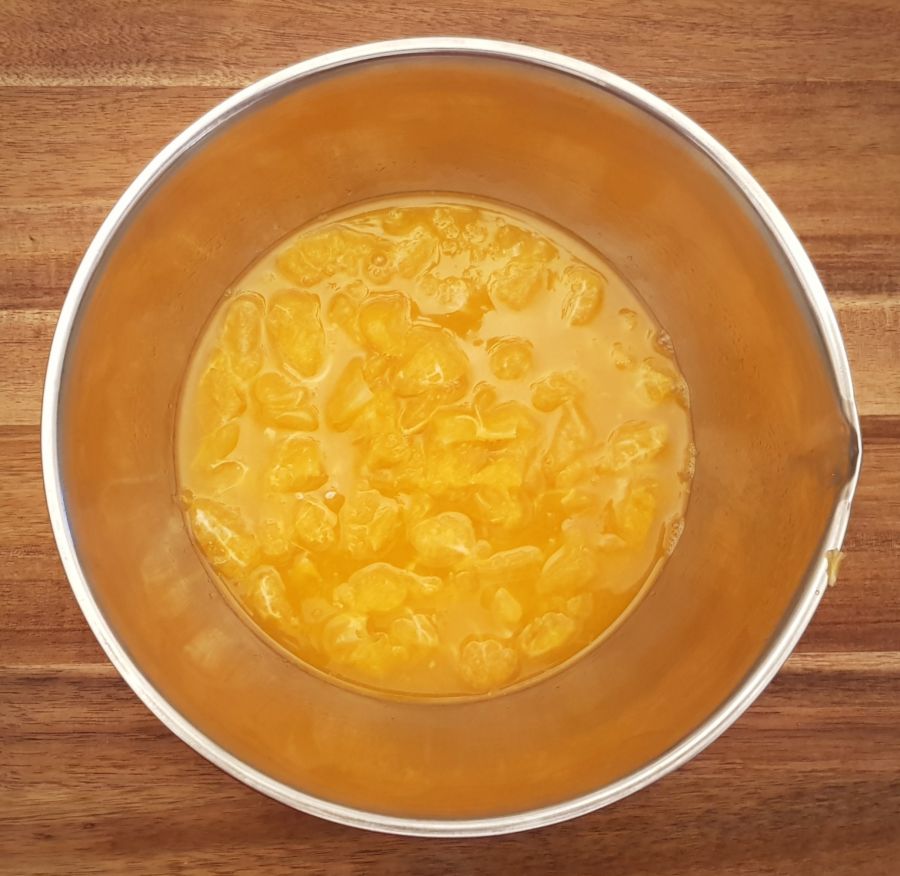 - 460 g Mandarinensaft (ausgepresst) und Fruchtfleisch ohne viel von den weißen Fäden