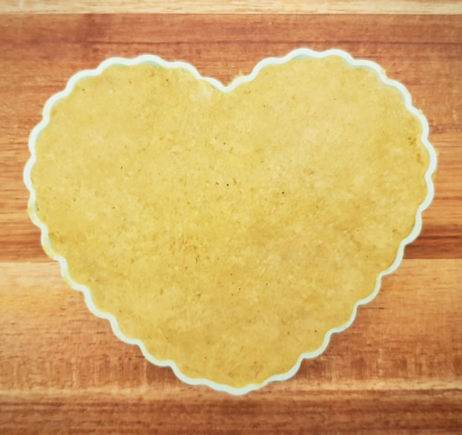 - Den Teig in Herz-Förmchen streichen - Link bei den Zutaten. Wenn man keine Herz-Förmchen hat, kann man mit den Fingern auch Herzen formen und einen Rand hochziehen.