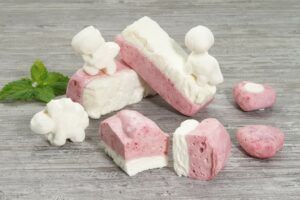 - Diese Marshmallow-Fluffmasse sollte aber extra schnell und noch warm verarbeitet werden, da sie rasch anzieht.