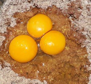 - Mit feuchten Händen einen Stollen formen und bei 150 Grad Umluft 60 Minuten backen.