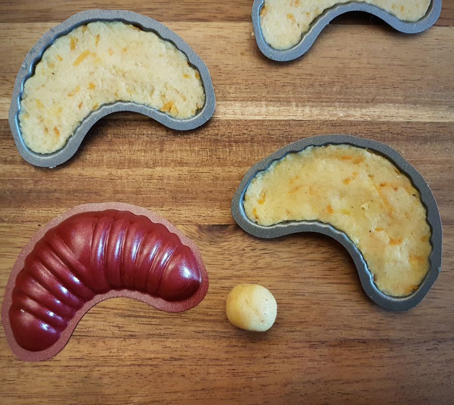 - Ich hab die Masse in Blechförmchen (Kipferlform 8 cm) gestrichen. Mit Blechförmchen werden Kekse und Kleingebäck super. Es können aber auch Kugerl geformt werden und etwas flachgedrückt werden, oder Kleckse mit dem Löffel. Alternativ könnt Ihr auch den Teig in eine Silikonform streichen - Beispiel Vanillekipferlform von Lurch.