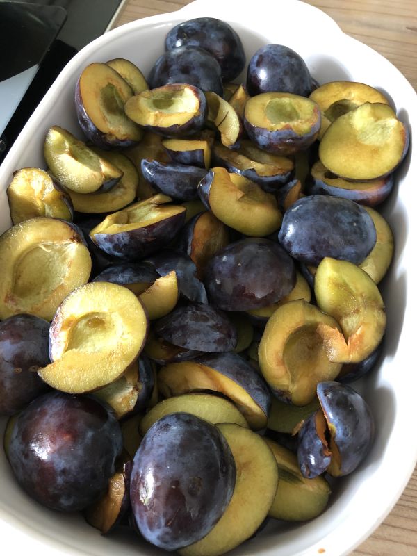 - 1 kg Zwetschgen entsteint und halbiert