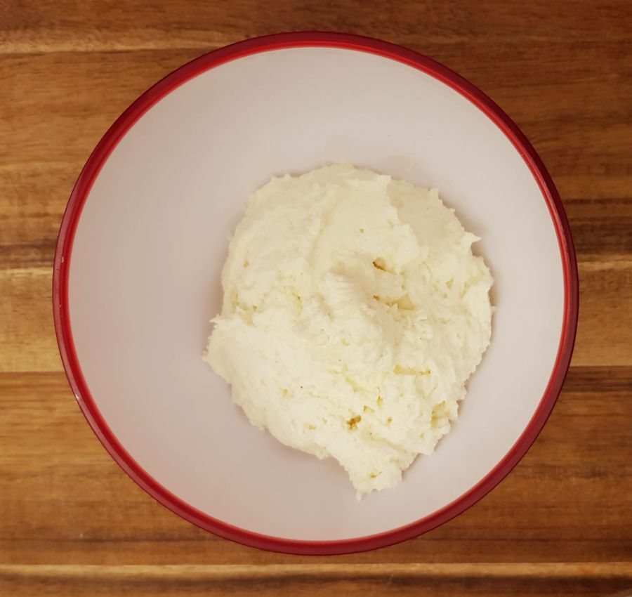 - In der Zwischenzeit Magerquark, Vanillepuddingpulver, Low Carb Kristallin und Pure Flavour glatt miteinander vermischen.