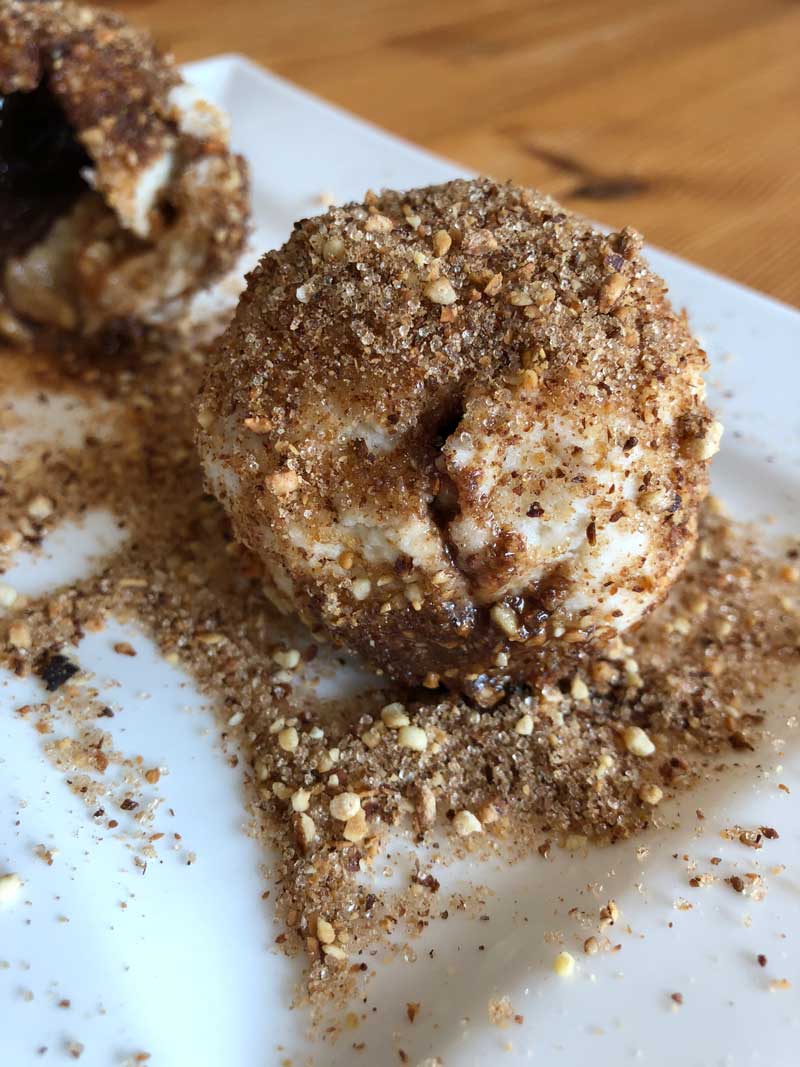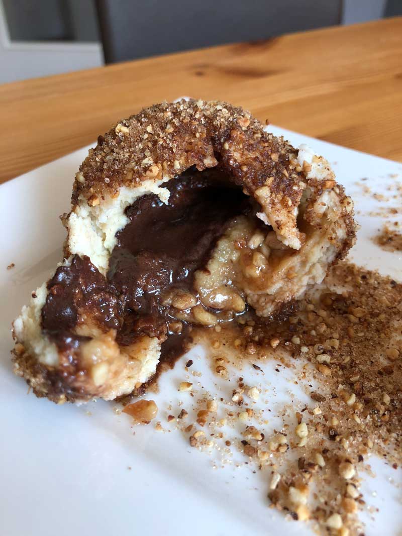 - Danach wälzt Ihr die Knödel in Zutaten Eurer Wahl - ich habe Haselnüsse kurz in einer Pfanne ohne Fett geröstet und mit Karamelltraum vermischt! Das schmeckt SOOOOO Hammer!! Man könnte auch braune Butter drüber geben, Zimt und vieles mehr! Lasst Eurer Fantasie einfach freien Lauf!