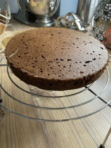 • Torte 2-3 Stunden in den Kühlschrank stellen, damit Marmelade in Kuchen einziehen kann und gut abkühlt.