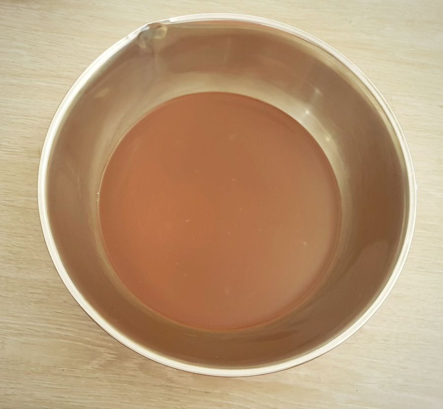 • 200g von den 410g Wasser leicht erwärmen. Kakao und Low Carb Süsse darin auflösen und abkühlen lassen.