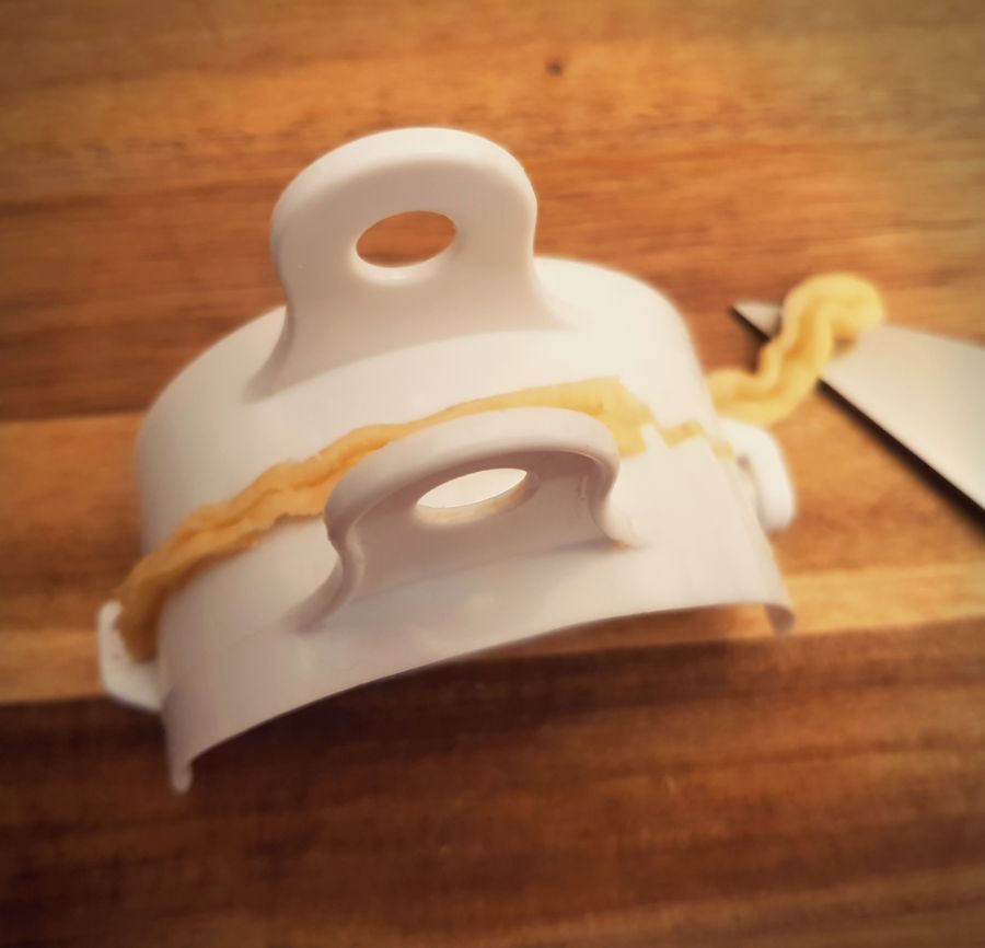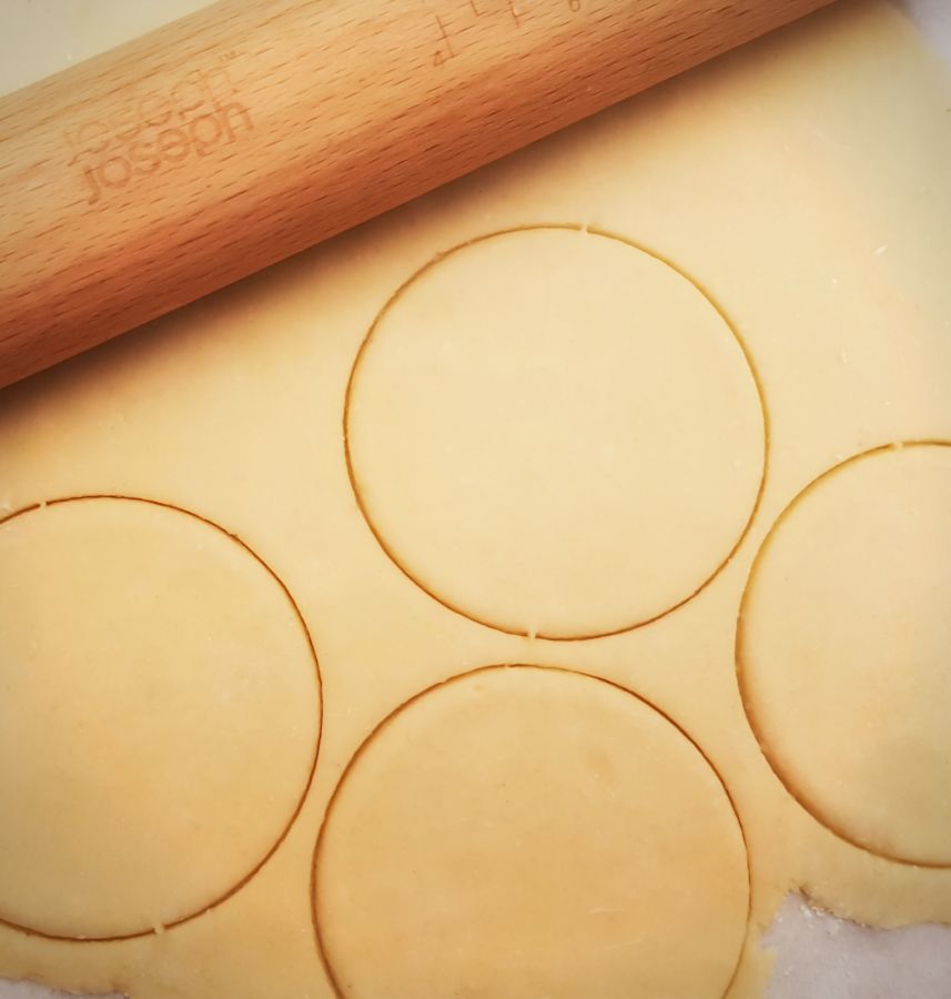 • Mit Hilfe von etwas Bambusfaser auf 2 mm ausrollen und mit dem Teigtaschenformer Kreise ausstechen.