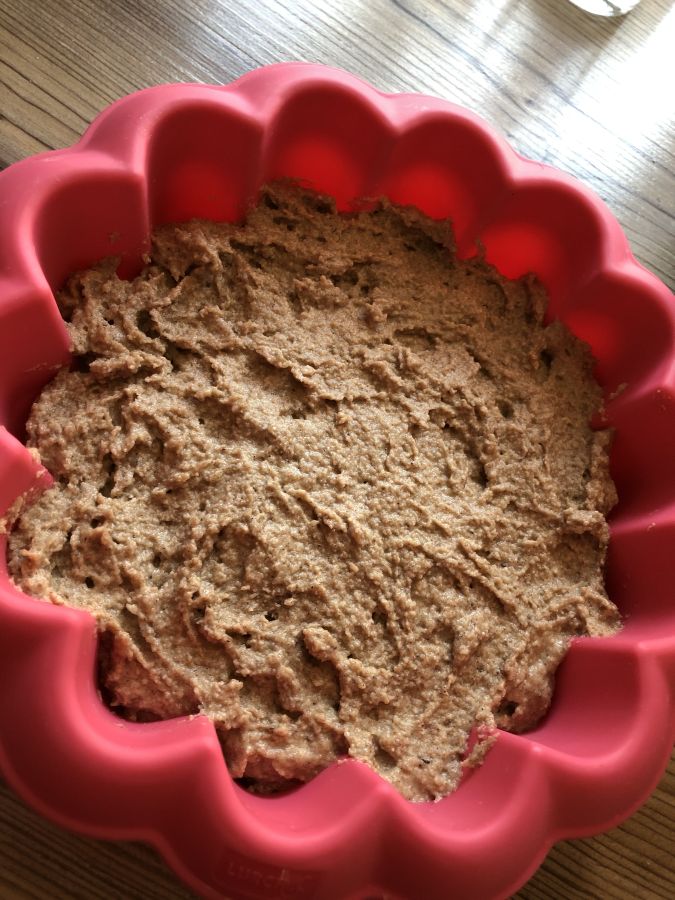 - Den Teig in die Form geben.