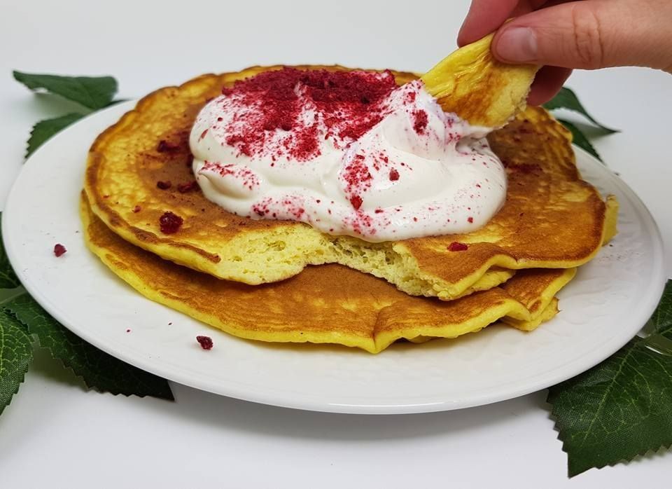 Rezept Zitronen-Buttermilch-Pancakes mit Himbeer-Quark lowcarb glutenfrei