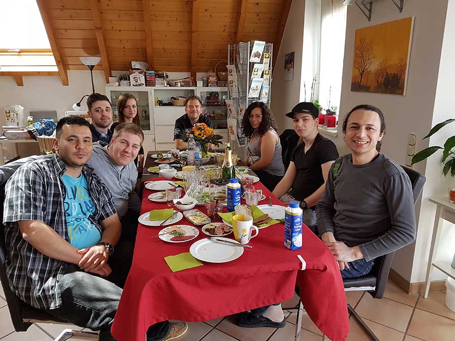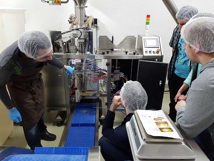 Vor einer Weile hat uns das Lagerteam besucht und unsere Betriebsstätte besichtigt. Da ein Betriebsausflug unter der Woche nicht möglich war (denn wer hätte sonst eure Pakete gepackt?), gab es einen leckeren Samstagsbrunch mit Maschinendemonstration vom Chef persönlich. 😉