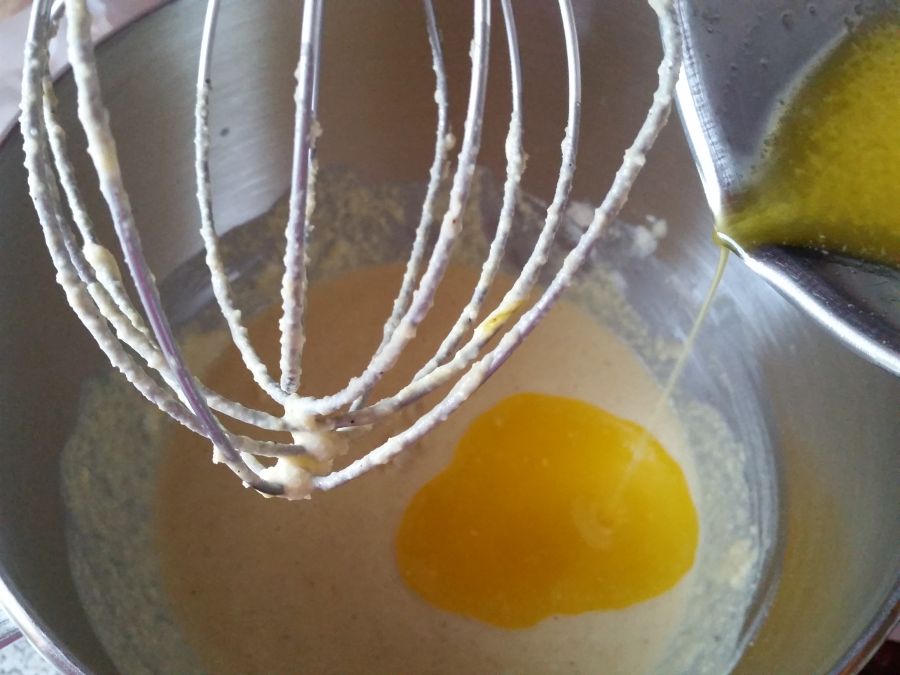 Die Butter schmelzen, zum Teig geben und gut verrühren.
