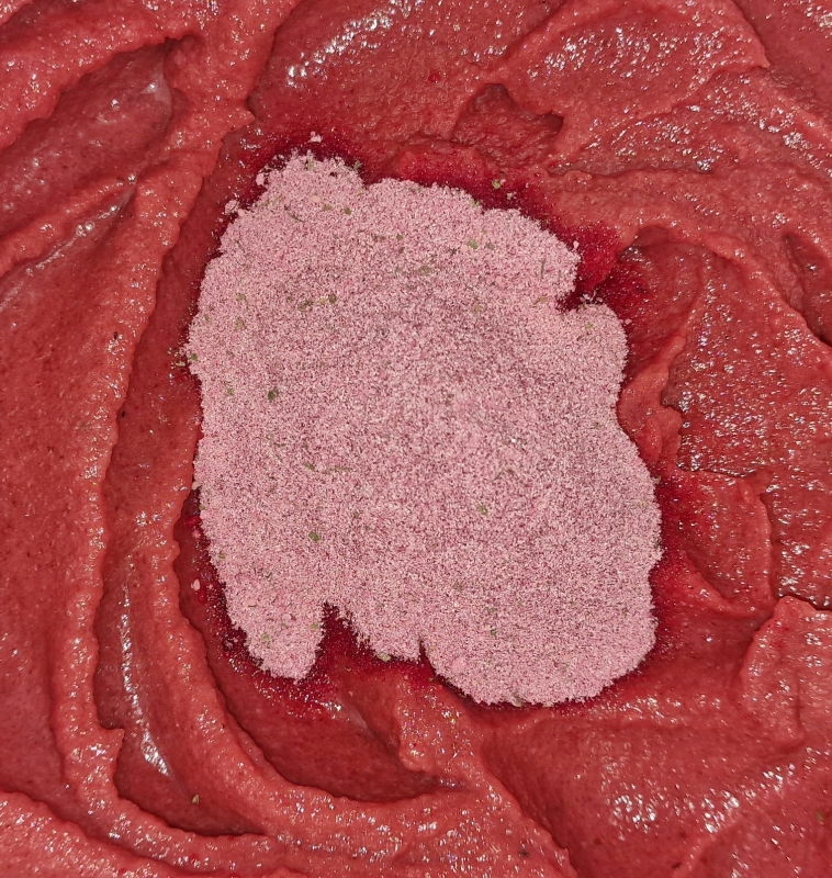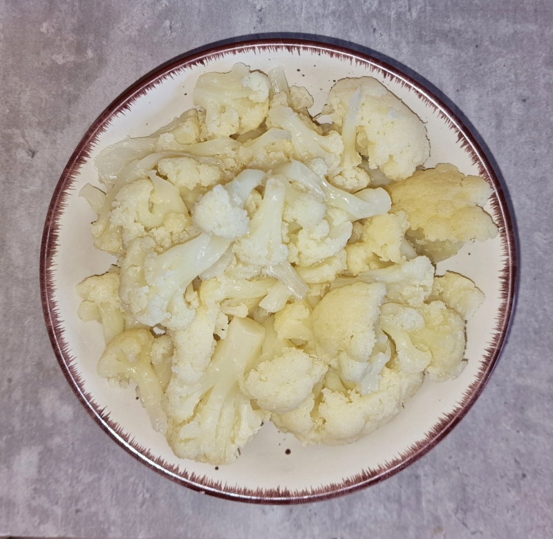 Blumenkohlröschen weich dünsten und abseihen, Rote Beete leicht erwärmen kleiner würfeln. Milch erwärmen - nicht zu heiß.