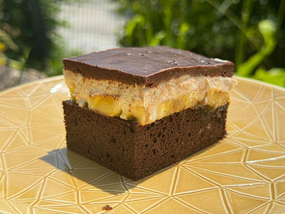 TIPP: Die Schnitte ist sehr mächtig. Nach Belieben einfach die Menge für den Boden halbieren und die Mengen für die Creme verdoppeln. Einfach selbst nach Lust und Laune anpassen.