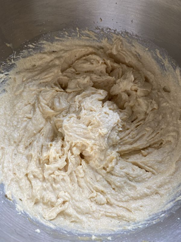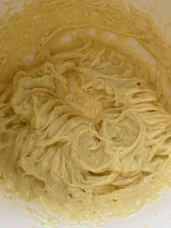 Die Butter schmelzen, zum Teig geben und gut verrühren.