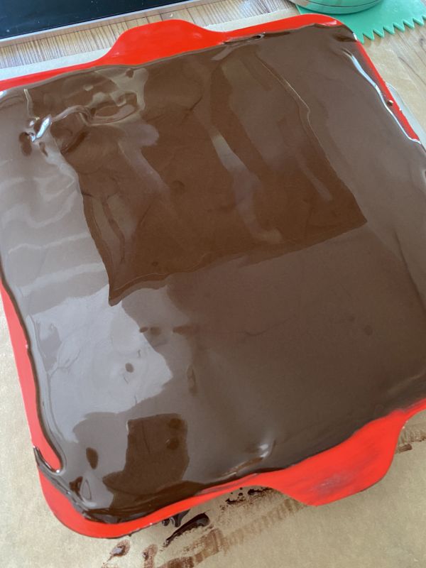 Etwas warten bis die Schokolade anzieht.