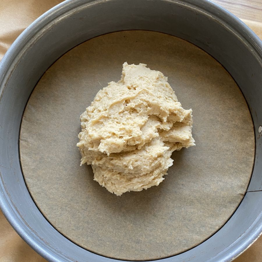 Den fertigen Teig in die Backform geben.