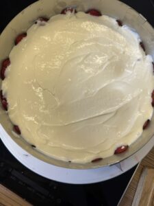 Den Rest der Creme über die Erdbeeren geben und glatt streichen.