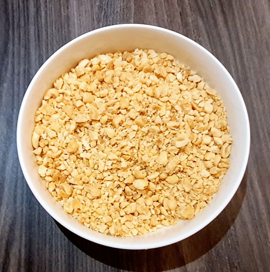 In der Zwischenzeit die Erdnüsse grob in einem Multizerkleinerer zerkleinern. Nicht fein mahlen.