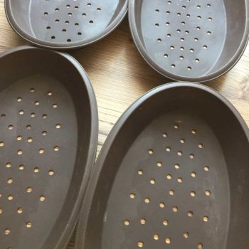Die Hände waschen und gut abtrocknen. Die Fladen mit Bambusfaser bemehlen und sehr dünn ausrollen. TIPP: Diese Pizzaformen von Lurch sind für eine Portion perfekt. Man kann den Teig direkt in der Form mit einem kleinen Teigroller ausrollen.