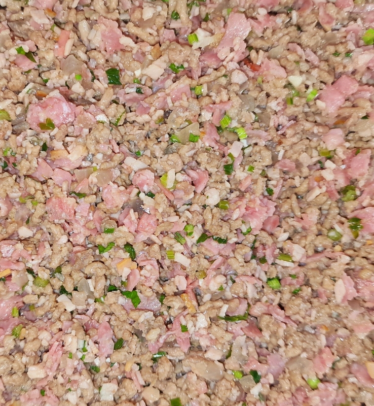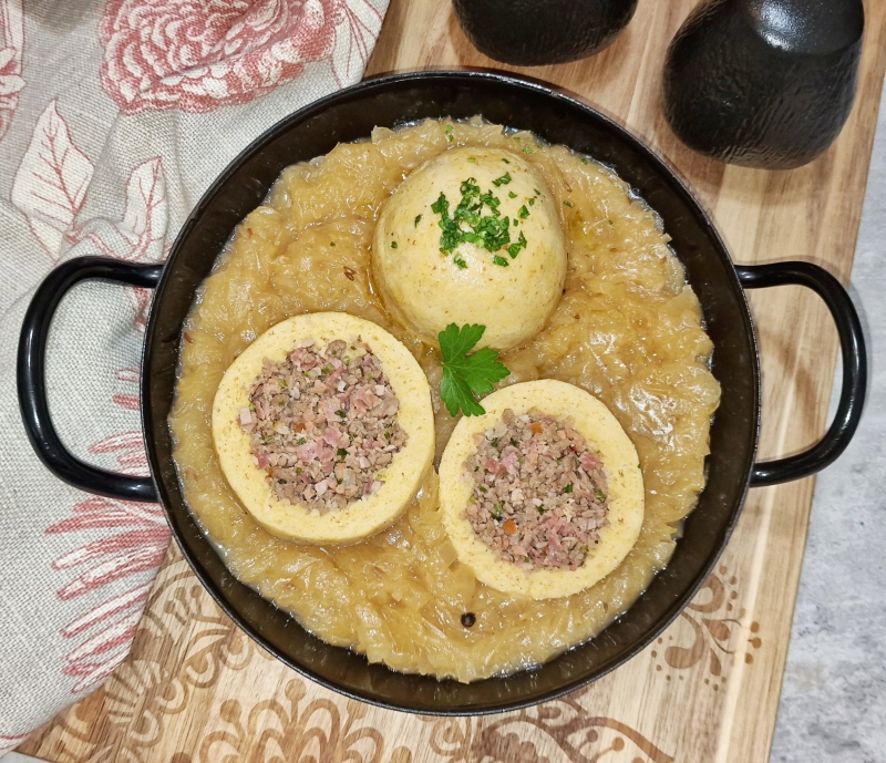 Unbedingt ans Rezept für die Teigmasse halten, sonst wird der Teig zu fest. Die Fülle kann abgewandelt werden, mit Braten, gekochtem Rind etc.