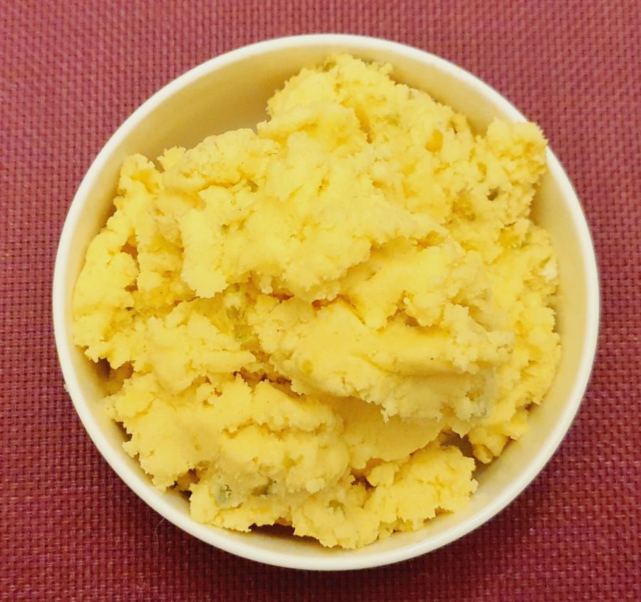 Alle Zutaten für den Teig in eine Schüssel geben und mit einem Löffel vermengen.